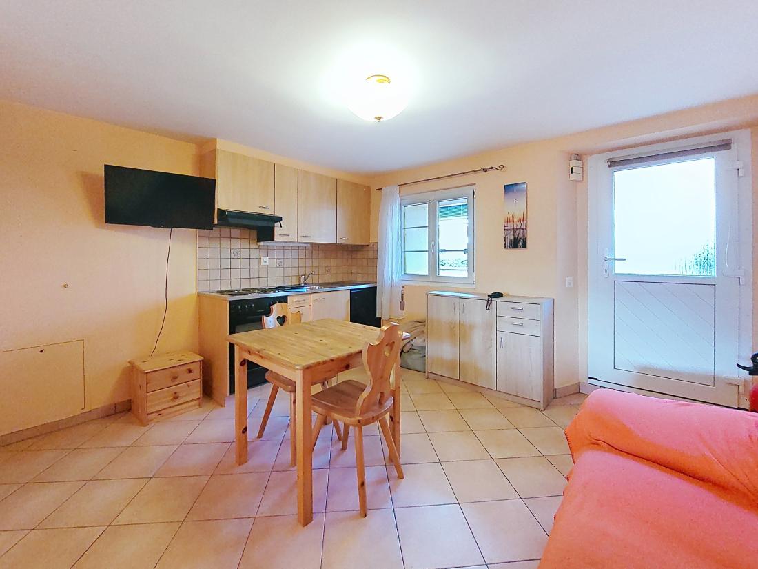 Charmant studio meublé situé au rez-de-chaussée d’une petite résidence, à l’entrée est du village de Saxon. Idéalement placé, il offre un cadre pratique et agréable.